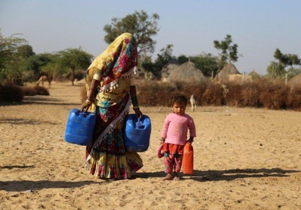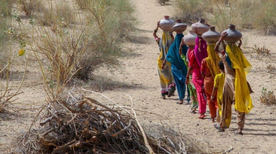 Womenfolk, who are generally responsible for gathering water in the area, have to walk 3 to 4 kilometers every day to bring what little water they can get.
